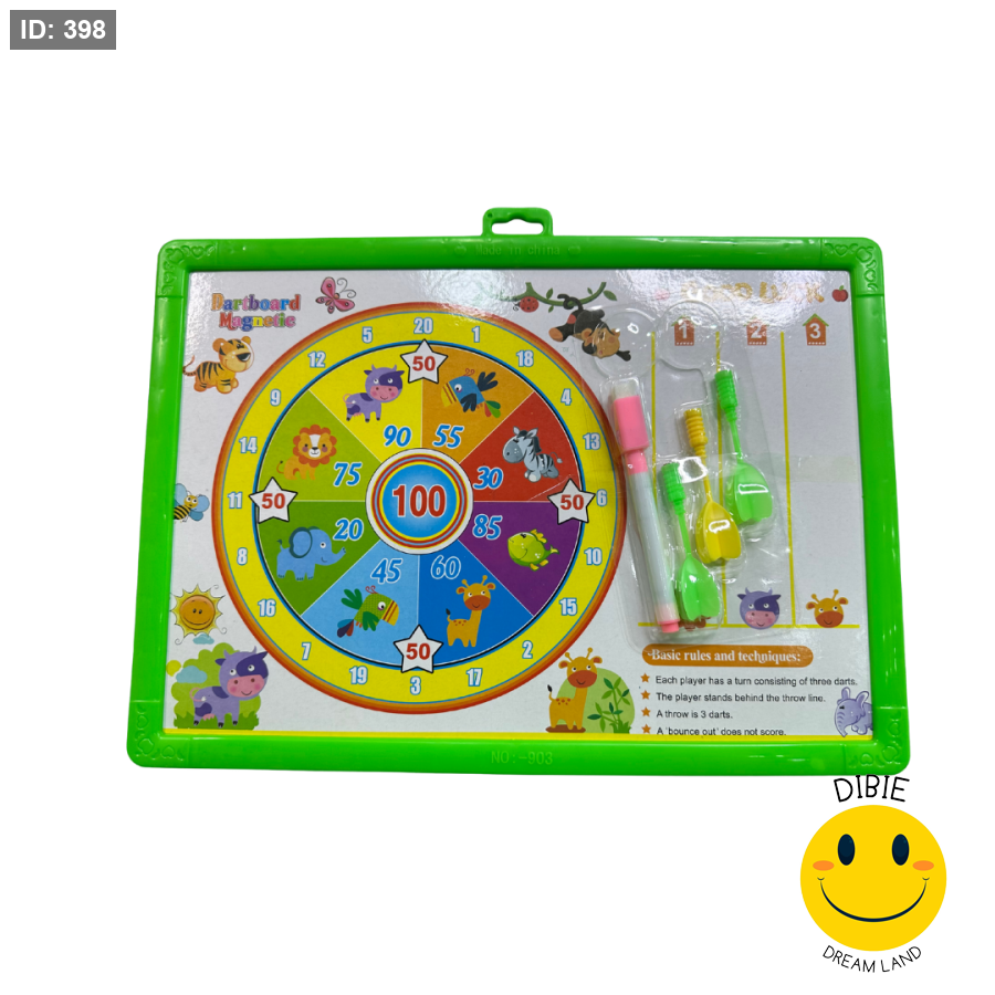 لوح كتابة مزدوج الوظيفة للأطفال – وجه عبارة عن لعبة دارت مغناطيسية ممتعة لتحديات التصويب، والوجه الثاني سبورة للكتابة والرسم 🖼️✍️