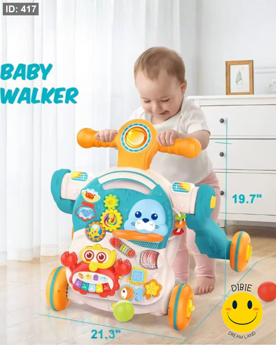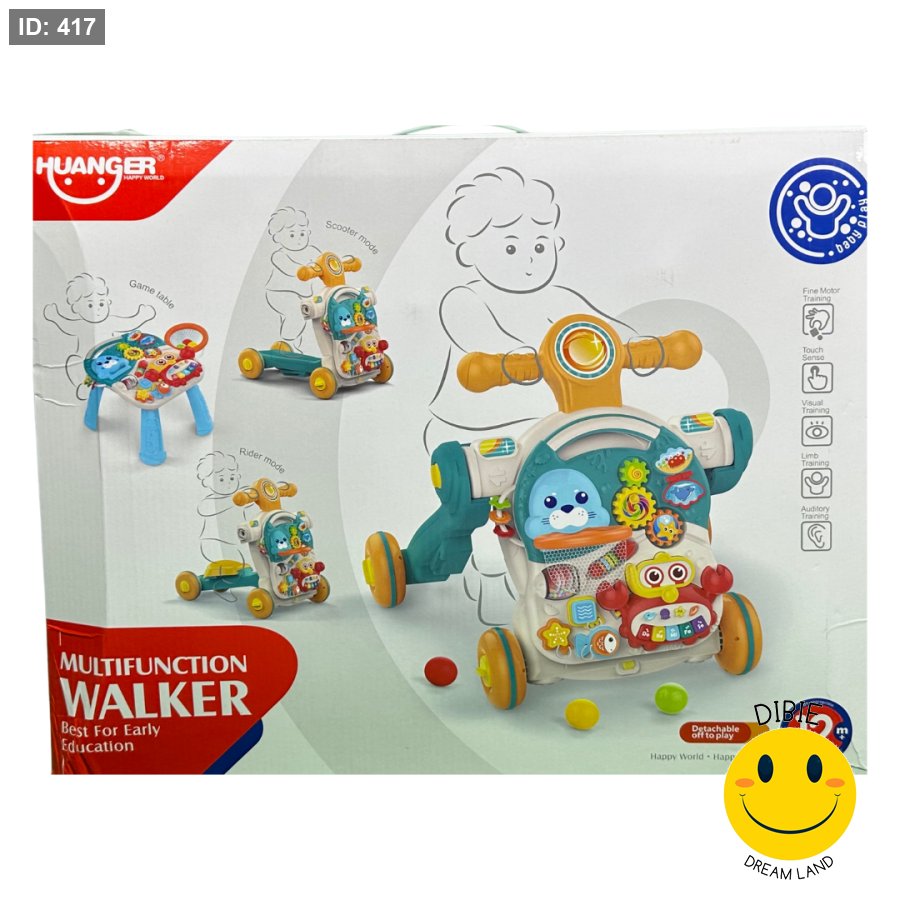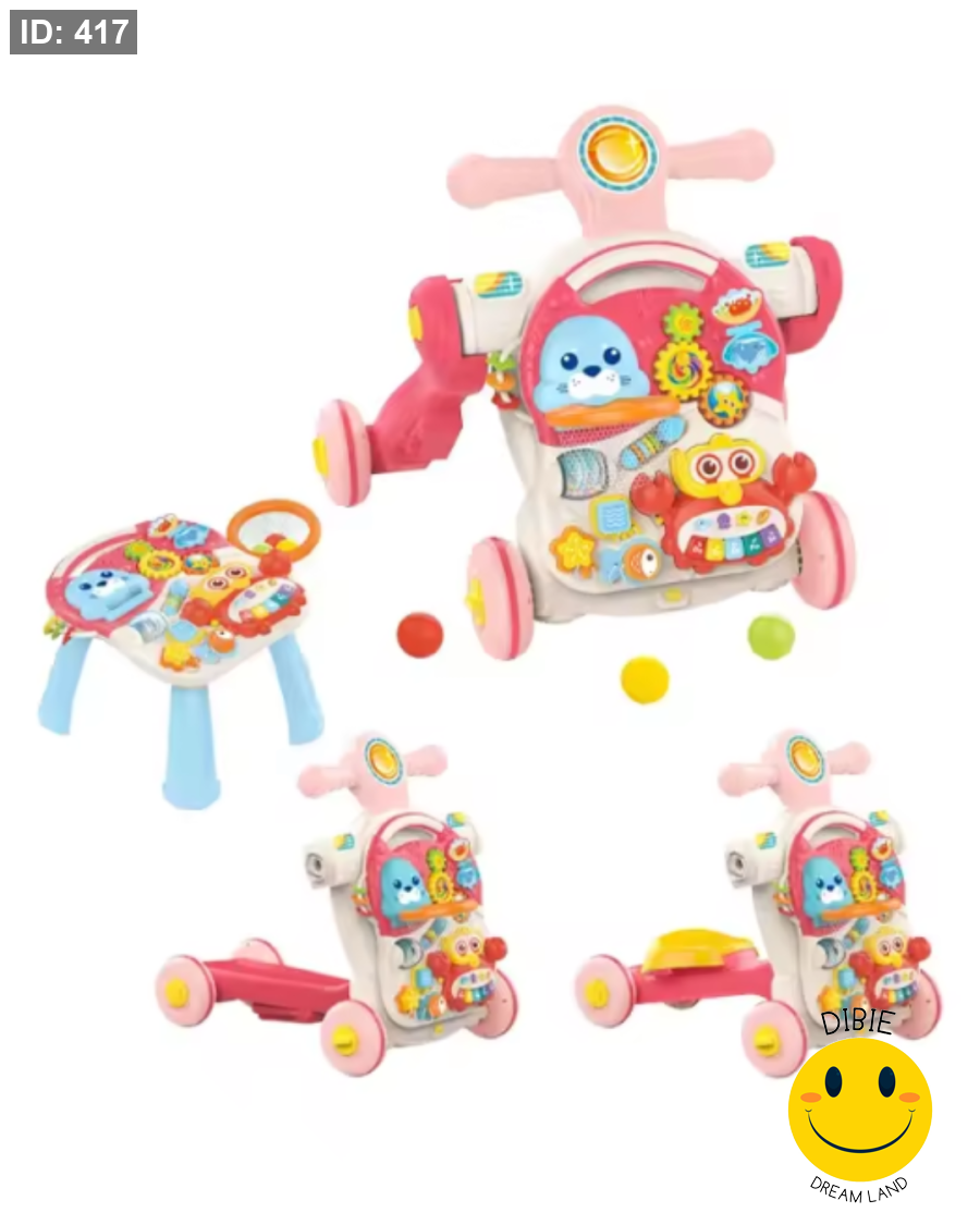 🔹 4 في 1: ووكر للمشي 🚶♂️ + طاولة ألعاب 🎮 + دراجة صغيرة 🛴 + لعبة تعليمية 🧠