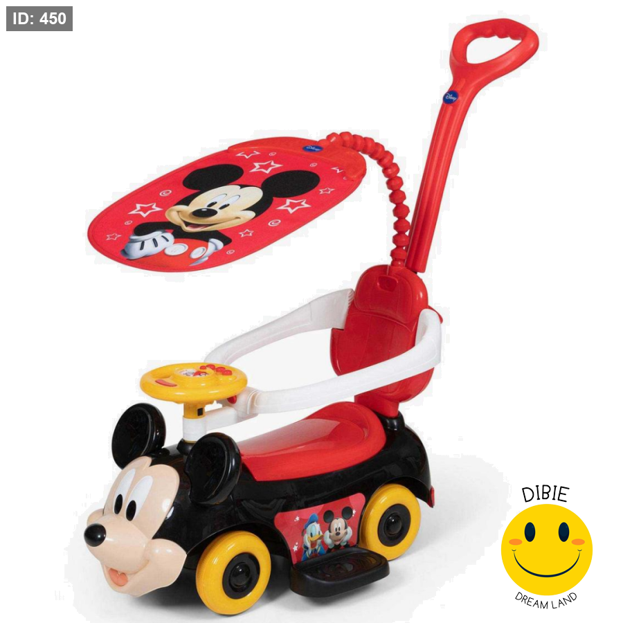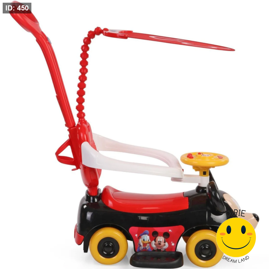 مع شخصية ميكي ماوس المفضلة عند كل الأطفال، سيارة أنيقة باللون الأحمر والأسود مع مظلة علوية للحماية من الشمس ☀️💖