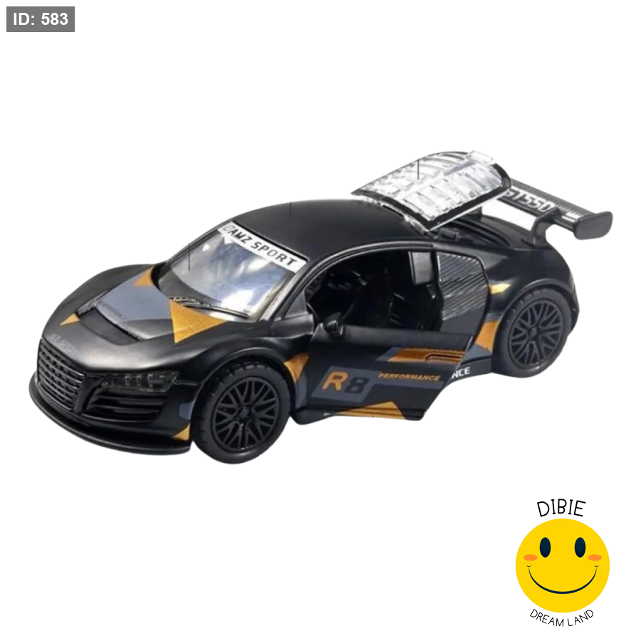 نسخة من Audi R8 Performance Racing، مع جناح سباق خلفي ضخم وخطوط رياضية.