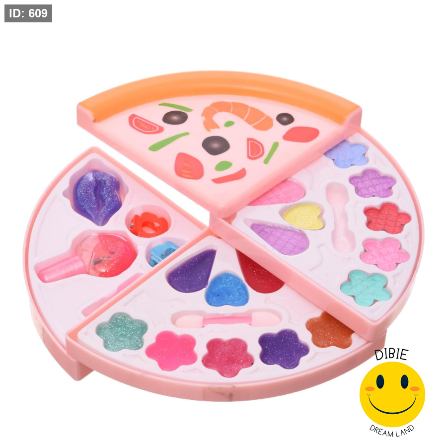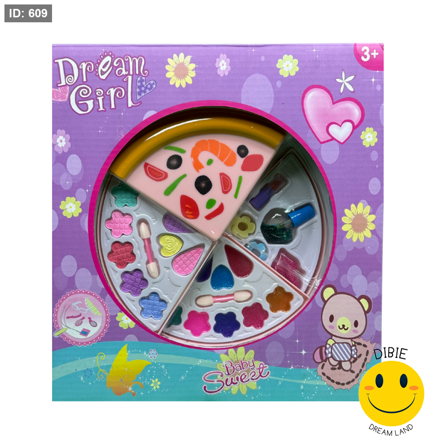 خلي طفلتك تعيش تجربة جمالية ممتعة مع طقم مكياج Dream Girl على شكل بيتزا مبتكرة 🍕✨. مكون من عدة قطع ملونة تحتوي على مستحضرات تجميل وهمية آمنة للبنات، مثل ظلال العيون، أحمر الشفاه، طلاء الأظافر، مع فرش وأدوات صغيرة للزينة.