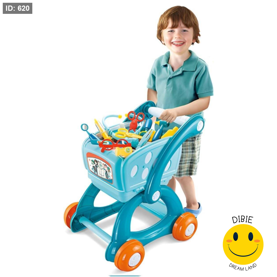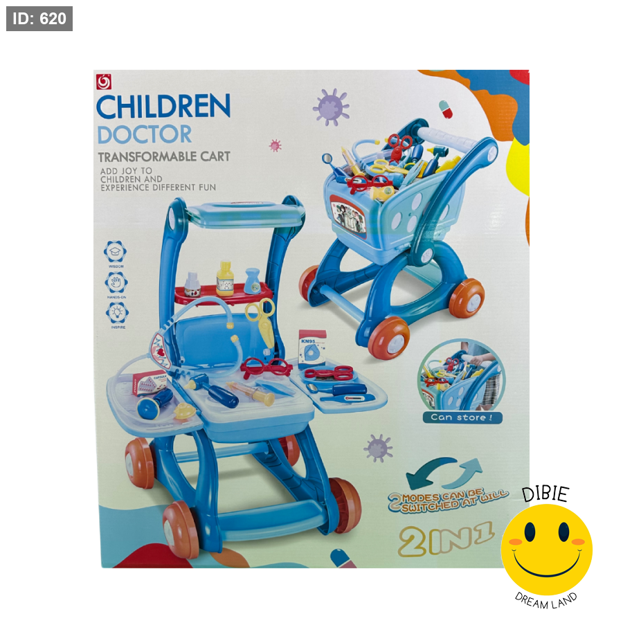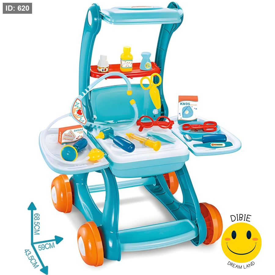 وضعيتان للّعب: عربة تسوق ممتلئة بالأدوات الطبية أو طاولة فحص تفاعلية.