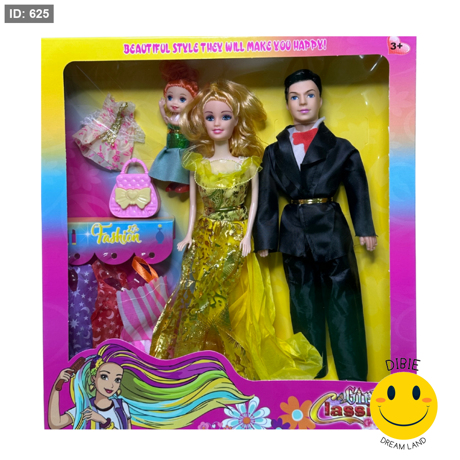 عروسة كبيرة بفستان أنيق مزخرف (ألوان متعددة: أصفر أو أحمر).