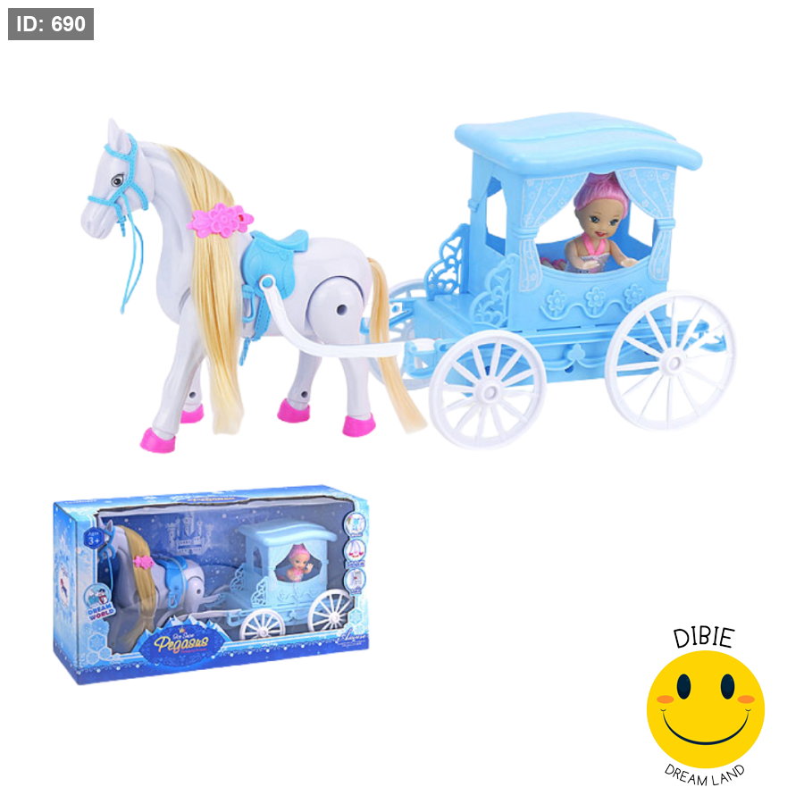 🦄 حصان جميل بعُرف ذهبي متصل بعربة أميرات رائعة