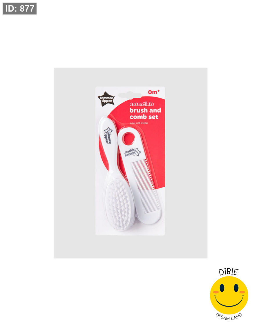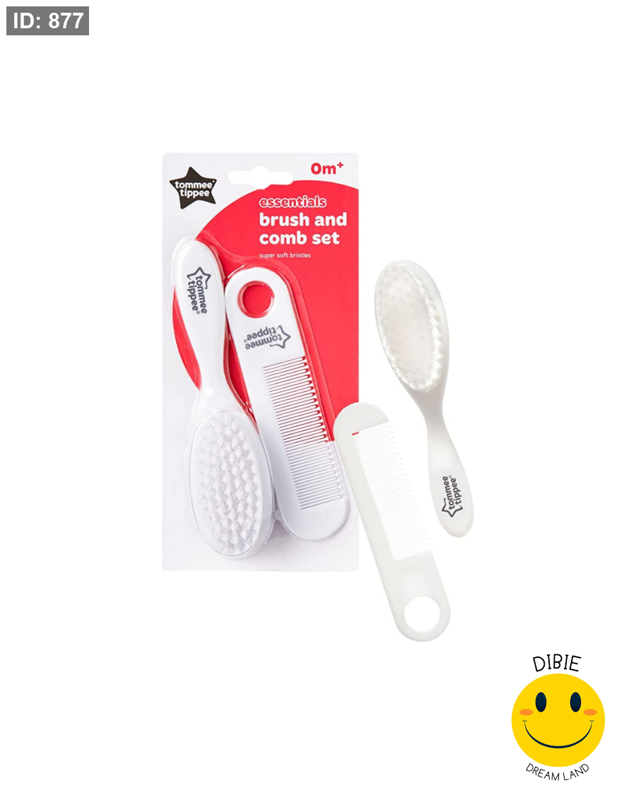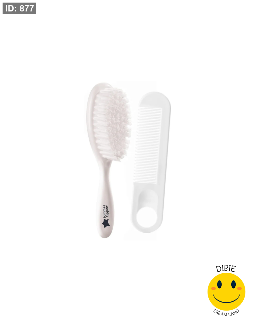 طقم فرشاة ومشط الأطفال Tommee Tippee Essentials مصمم خصيصًا للعناية اليومية بشعر الرضع بطريقة آمنة ولطيفة. يتميز بشعيرات ناعمة جدًا تحافظ على فروة الرأس الحساسة، مع مشط بأسنان مستديرة لفك التشابك بدون شد أو إزعاج.