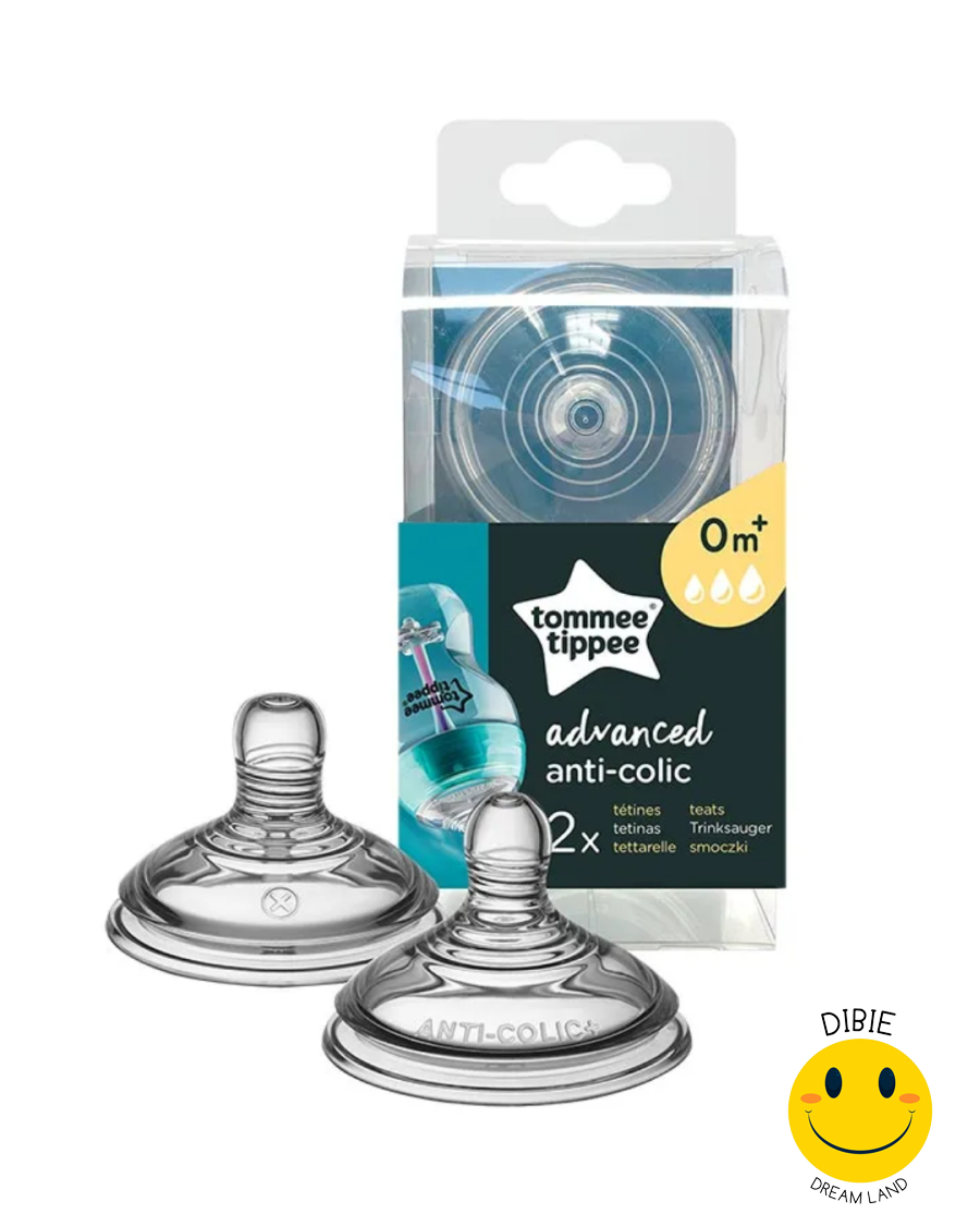 حلمات الرضاعة Tommee Tippee Advanced Anti-Colic مصمّمة بتقنية متطورة تساعد على تقليل دخول الهواء أثناء الرضاعة، مما يخفّف من المغص والغازات ويمنح الطفل تجربة رضاعة أكثر هدوءًا وراحة.