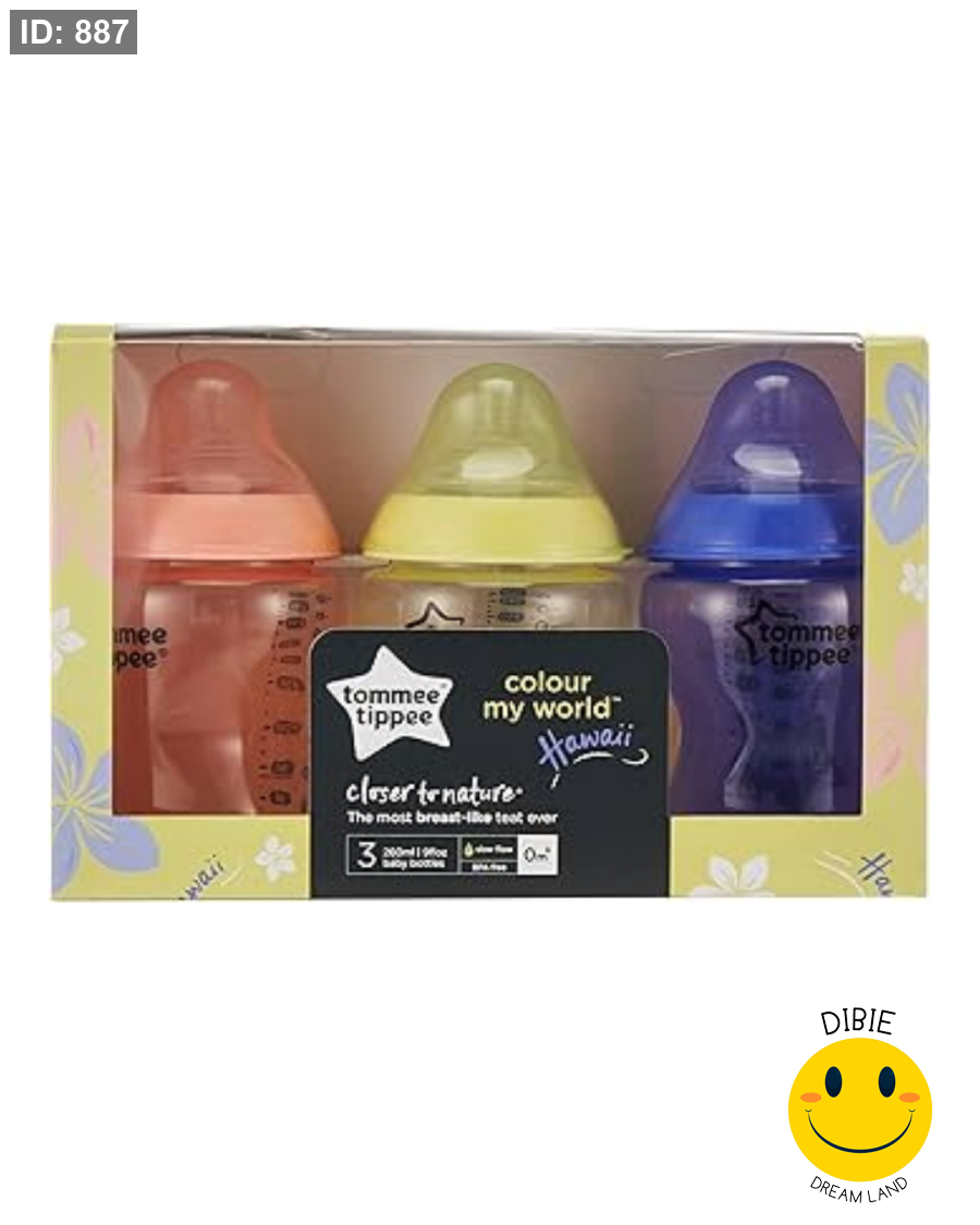 طقم رضّاعات Tommee Tippee Closer to Nature – Colour My World يوفّر تجربة رضاعة طبيعية ومريحة لطفلك منذ اليوم الأول. يتميّز الطقم بتصميمه الملوّن الجذاب وبحلمات سيليكون ناعمة تحاكي شكل ثدي الأم، مما يساعد على التقام طبيعي ويُسهّل الانتقال بين الرضاعة الطبيعية والرضّاعة بدون ارتباك.