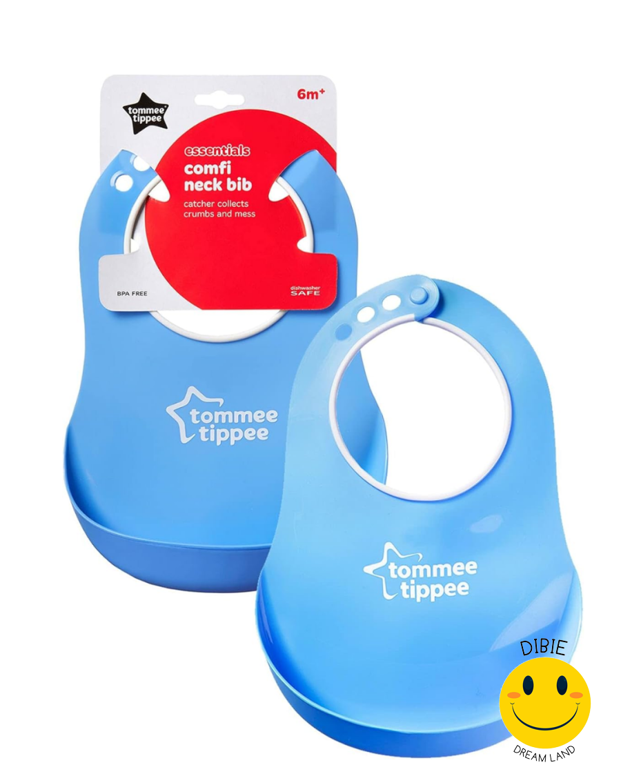 مريلة عملية ومريحة مصمّمة خصيصًا لتسهيل وقت الطعام وتقليل الفوضى. تتميّز بتصميم Comfi-Neck اللطيف على رقبة الطفل، مع جيب سفلي ذكي يلتقط بقايا الطعام والفتات.