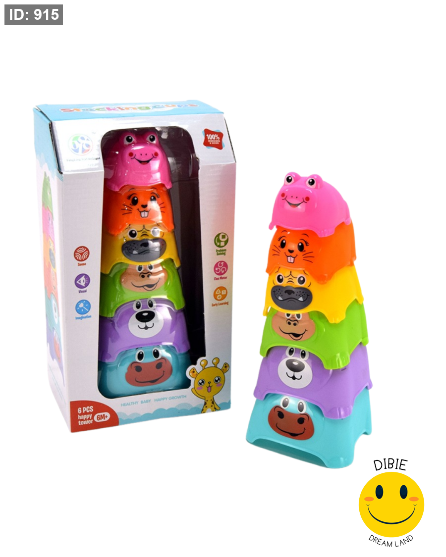 لعبة ممتعة وملوّنة على شكل برج أكواب متراكبة مع وجوه حيوانات كيوت، تساعد الطفل على التعلّم من خلال اللعب، وتنمّي مهاراته الحركية والذهنية بطريقة آمنة ومسلّية.