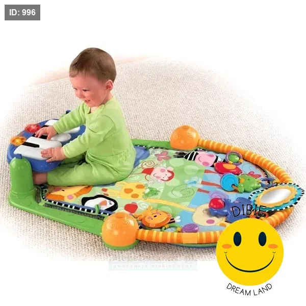 سجادة لعب تفاعلية متعددة الاستخدامات، مزوّدة ببيانو موسيقي وقوس ألعاب معلّقة بأشكال حيوانات لطيفة. مصمّمة لتنمية حواس الطفل وتحفيز الحركة والسمع والبصر منذ الأشهر الأولى.